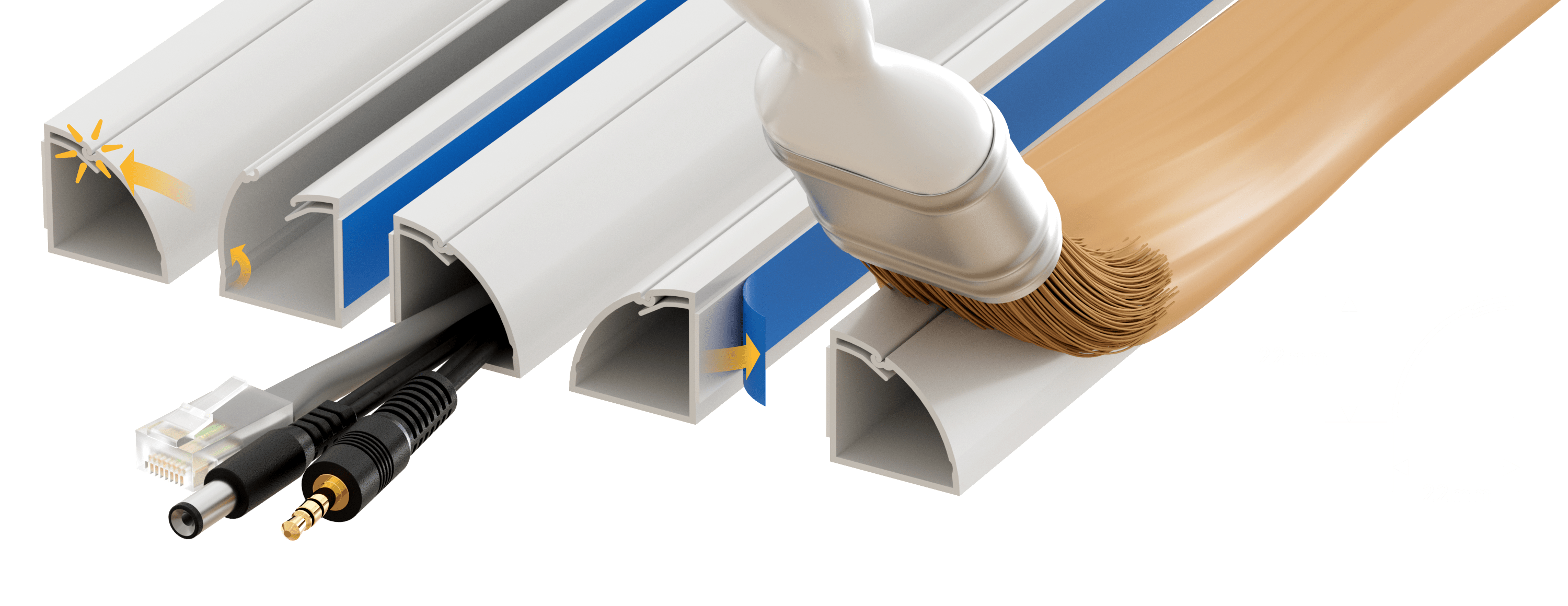 D-Line 22 x 22mm ¼ Round Trunking is ideal for covering cables around floors and counter tops.